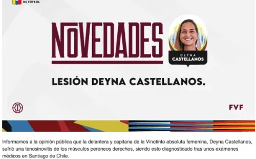 “Castellanos se mantendrá bajo tratamiento y observación del cuerpo médico de la delegación, optando por su máxima recuperación de cara a la Copa América femenina de Colombia”, explica el comunicado de Venezuela.