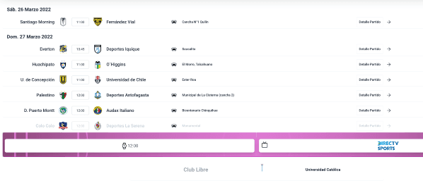 El primer partido que transmitieron en el torneo fue el de Universidad Católica frente a Fernández Vial. Luego, siguió Palestino ante O’Higgins. En la tercera fecha repitieron las Baisanas, esta vez como visitantes ante Universidad de Chile, y ahora es el turno de Colo-Colo, quienes recibirán a La Serena.