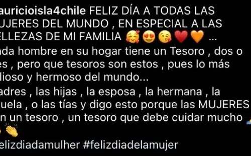 Chile es un país de poetas. Por lo mismo Mauricio Isla tuvo su particular forma de festejar el Día Internacional de la Mujer, uno que quiso dedicar a las que componen su querida familia, con un mensaje en redes sociales.