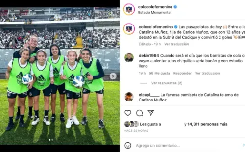 “Las pasapelotas de hoy. Entre ellas Catalina Muñoz, hija de Carlos Muñoz, que con 12 años ya debutó en la Sub 19 del Cacique y convirtió 2 goles”, escribió el Cacique en la cuenta del equipo femenino para festejar a su joven ariete.