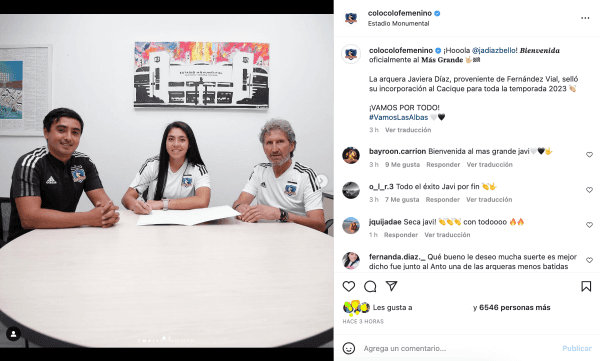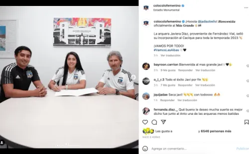En sus primeras palabras con la camiseta alba, la guardameta quiso enviar un mensaje a los hinchas del club. “Hola, soy la Javi Díaz, nueva jugadora de Colo Colo y estoy muy feliz de pertenecer a esta familia. ¡Vamos Colo Colo!”, afirmó. Su fichaje ya se había filtrado con el video del camarín nuevo de equipo femenino.
