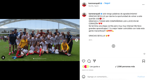 Ya terminada la temporada 2021/22 de la Primera Iberdrola, la nacional publicó imágenes en Instagram donde se despidió del resto del plantel. “Solo tengo palabras de agradecimiento! GRACIAS SEVILLA! por darme la oportunidad de volver a este querido club!! GRACIAS A TODAS MIS COMPAÑERAS LAS LLEVO EN MI CORAZÓN”, destacó.