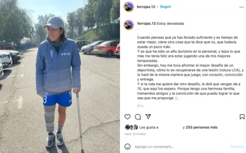 Este lunes, Rojas confirmó su lesión en su cuenta de Instagram. “Cuando piensas que ya has llorado suficiente y es tiempo de estar mejor, viene otra cosa que te dice que no, que todavía queda un poco más. Y es que ha sido un año durisimo en lo personal, y lejos lo que más me tenía feliz era estar jugando una de mis mejores temporadas“, comenzó.