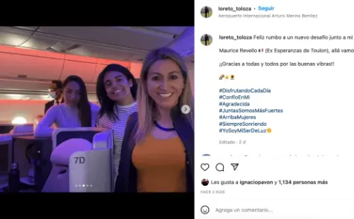 Toloza compartió en sus redes sociales las imágenes del viaje junto a Carvajal y Vásquez. “Feliz rumbo a un nuevo desafío junto a mi equipo. Maurice Revello(Ex Esperanzas de Toulon), allá vamos. ¡¡Gracias a todas y todos por las buenas vibras!!”, escribió.