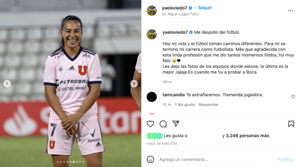 “Creo que en ningún lugar me había sentido tan querida y amada como cuando llegue a la U, mi proceso más lindo como jugadora lo he vivido estando en este hermoso club, por eso me duele tanto haber llegado a esto, a despedirme, pero después de 7 años con el nudo en la garganta me toca hacerlo”, comenzó el mensaje.