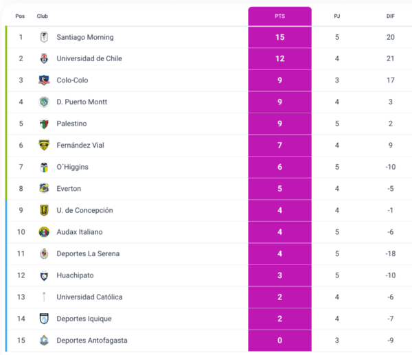 Palestino bajó hasta el puesto 5 de la tabla de posiciones con apenas nueve puntos; suman tres victorias y dos derrotas en cinco partidos. Al mismo tiempo, O’Higgins trepó hasta el séptimo lugar, con seis unidades, tras conseguir su segundo triunfo en lo que va de torneo.