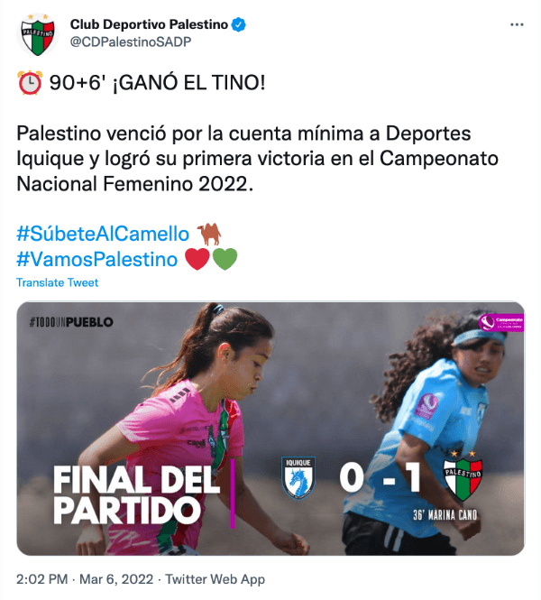 La capitana Marina Cano abrió el marcador a los 36′ y terminó sentenciando las acciones de cara al final. Palestino sigue en la parte alta, como ha acostumbrado en los últimos años, pero deja dudas con un funcionamiento no tan avasallado como en torneos pasados.
