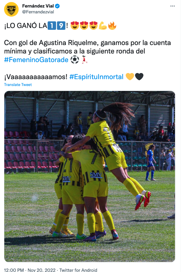 Su rival en semifinales será Fernández Vial. El Almirante hizo la hazaña y eliminó a las favoritas, Universidad de Chile, con un inteligente triunfo por 1-0. El partido se jugó este domingo y por las aurinegras anotó Agustina Riquelme, para darle la victoria desde los 37 minutos sobre las Leonas.