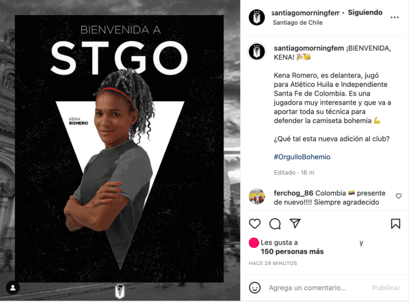“¡BIENVENIDA, KENA!Kena Romero, es delantera, jugó para Atlético Huila e Independiente Santa Fe de Colombia. Es una jugadora muy interesante y que va a aportar toda su técnica para defender la camiseta bohemia. ¿Qué tal esta nueva adición al club?”, expresaron en redes sociales.