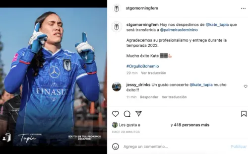 “Hoy nos despedimos de Katherine Tapia que será transferida a Palmeiras. Agradecemos su profesionalismo y entrega durante la temporada 2022. Mucho éxito Kate!”, escribieron para decirle adiós a su arquera titular de todo el año.