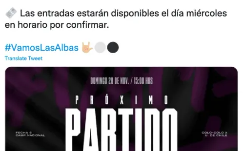 Domingo 20/11 | 15:00 | Colo Colo vs Universidad de Chile | Estadio Municipal de La Pintana | Grupo A