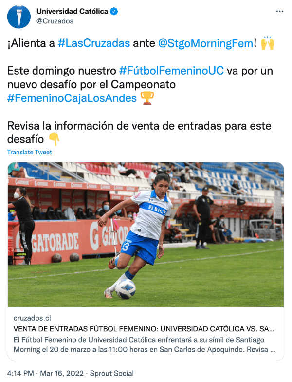 La buena noticia es que ambos desafíos cuentan con venta de entradas para público general. Por un lado, las azules se mudaron al estadio Municipal de La Pintana para recibir a las Baisanasante sus hinchas. Al mismo tiempo, en la UC decidieron vender boletos, ya que hasta hace dos semanas únicamente recibían hinchas con invitación.