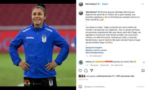 En su cuenta de Instagram, la argentina publicó un sentido mensaje antes de despedirse de sus compañeras. “Muchas gracias Santiago Morning por dejarme ser parte de su fútbol, de su gran equipo, sus grandes jugadoras y de su hinchada que siempre estuvo en todo momento”, manifestó.