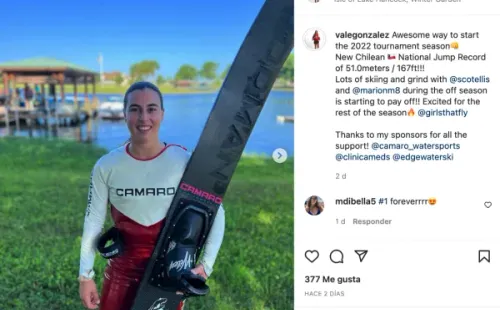 En el video, que publicó el Team Chile en sus redes sociales, se puede ver a Valentina González en el aire luego de obtener el récord. “¡VOLANDO AL RÉCORD DE CHILE! Compitiendo en Florida, Valentina Gonzálezvoló por 51 metros y estableció una nueva marca nacional en el Salto de Esquí Náutico. ¡Felicitaciones@valegonzalez!”, destacaron.