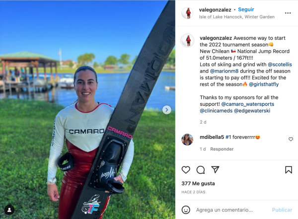 “Increíble manera de comenzar la temporada de torneos en 2022. Nuevo récord chileno de salto con 51.0 metros / 167 pies. Mucho esquí y rutinas con Scot Ellis yMarion Mathieu en la pretemporada están empezando a dar frutos! Muy emocionada para el resto de la temporada con @girlsthatfly”, compartió la atleta en su cuenta de Instagram.