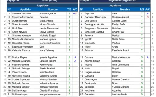 Por el lado de Argentina, formarán con Lara Esponda, Giuliana González, Celeste Dos Santos, Evelyn Domínguez, Catalina Roggerone, Chiara Singarella, Maricel Pereyra, Dalila Ippolito, Paulina Gramaglia, Anela Nigito y Estefanía Palomar.