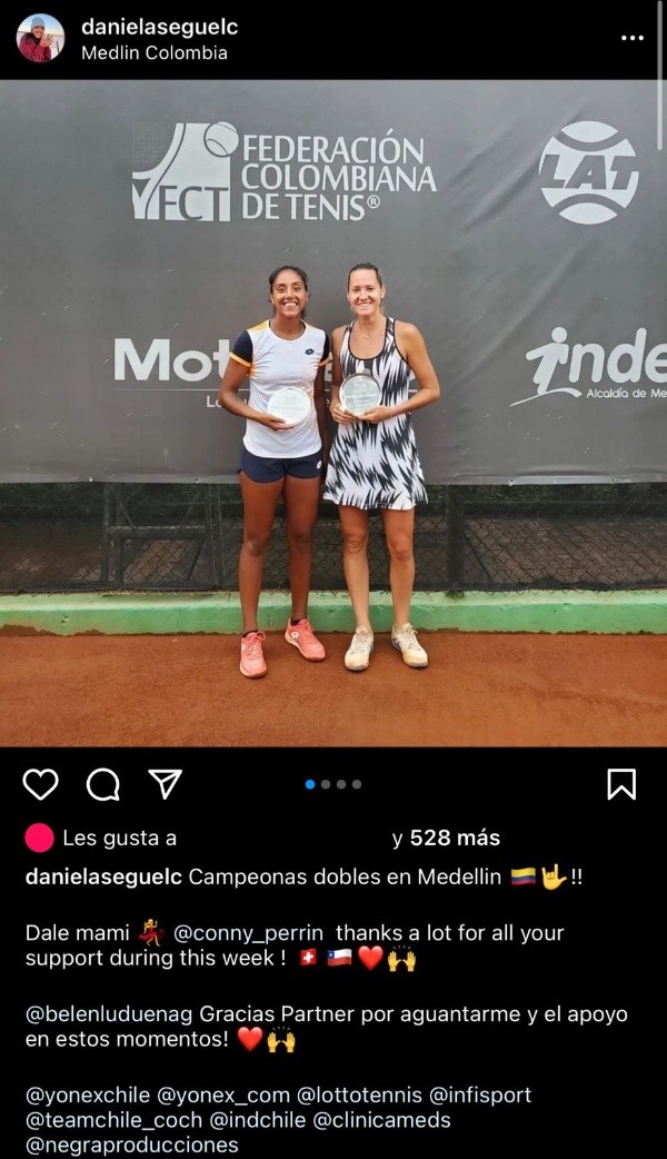 La pareja chilena-suiza fue cuarta sembrada, mientras que las dos sudmericanas eran las terceras cabezas de serie. Sin embargo, y luego de un larguísimo tercer set, finalmente se quedaron con el triunfo: fue 6-2, 5-7 y 10-8 para alzar el trofeo del W25 Medellín.
