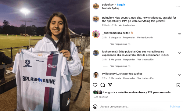 “Nuevo país, nueva ciudad, nuevos desafíos. Agradecida por la oportunidad, ¡vamos con todo este año!”, escribió la jugadora de nóveles 17 años en su cuenta de Instagram, luego de presentarse con la camiseta del Macarthur Rams.