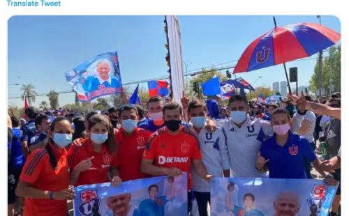 Parte del equipo femenino de Universidad de Chile dijopresente en el estadio Nacional. En las imágenes, difundidas en redes sociales durante este lunes, se ve a Bárbara Sánchez, a Carla Guerrero, al DT Carlos Véliz y a varios miembros del cuerpo técnico, con unas emotivas banderas que decían”las leyendas nunca mueren”.