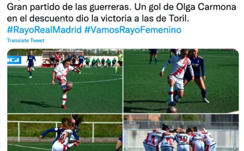 Este miércoles sumaron una nueva. Real Madrid fue el rival, en un partido que quedó pendiente de la jornada 18, y que se disputó en la Ciudad Deportiva Rayo Vallecano desde las 11:00 horas (hora de Chile). Fue victoria para las merengues por 1-0, con gol de Olga Carmona a los 89′.