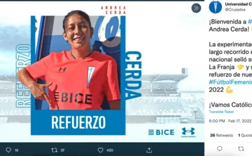 Yazmín Torrealba fue confimada como el primer refuerzo del torneo 2022, mientras que este jueves se anunció el nombre de Andrea Cerda como la segunda jugadora que se incorpora a la Católica.