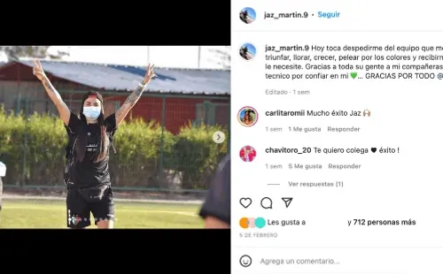 “Hoy toca despedirme del equipo que me ha visto triunfar, llorar, crecer, pelear por los colores y recibirme cuando le necesité. Gracias a toda su gente a mi compañeras y cuerpo tecnico por confiar en mí… GRACIAS POR TODO Palestino“, indicó el pasado 5 de febrero.