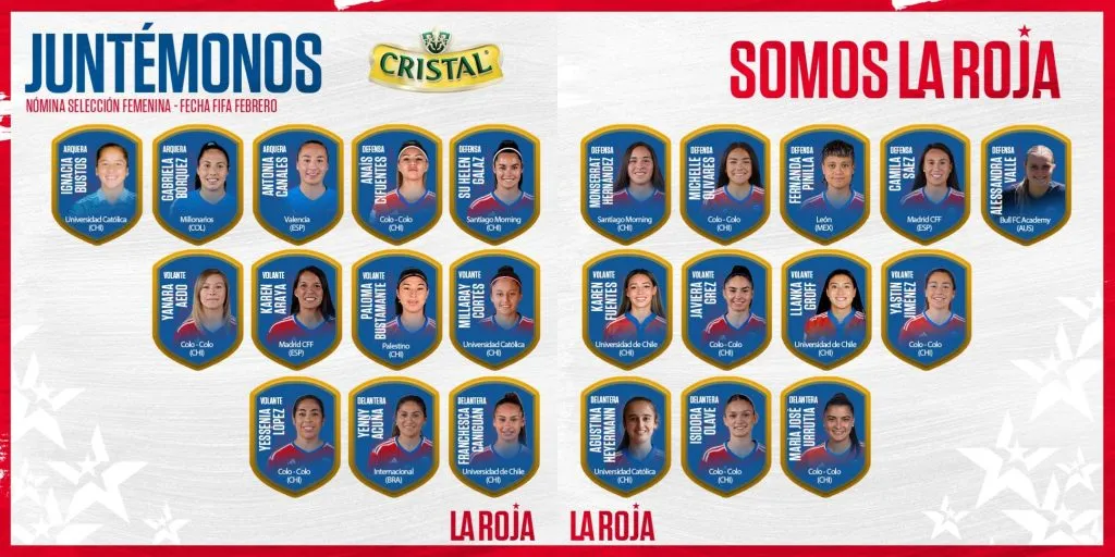 A ella se suman otras siete futbolistas de La Roja Femenina que no sobrepasan los 20 años, en una señal potente del recambio que se busca en la Selección, con nombres como Anaís Cifuentes, Montserrat Hernández, Agustina Heyermann y Millaray Cortés, entre otras.