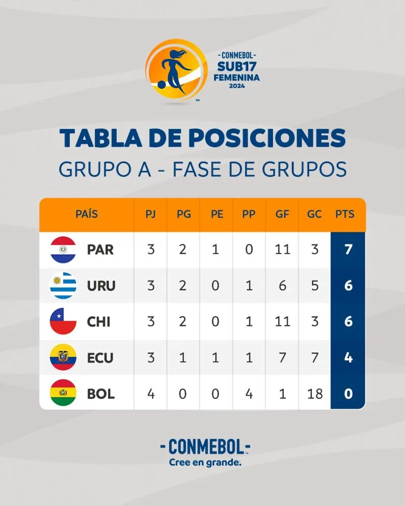 De esta forma termina el Grupo A con Paraguay como líder con 10 puntos, seguido de Ecuador con 7 y ambos clasificados. Chile, Uruguay y Bolivia se quedaron afuera.