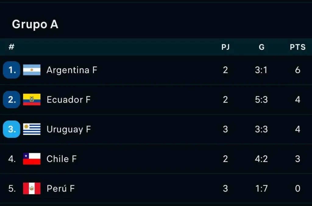 Tras los triunfos ante Perú y ahora la derrota ante la Albiceleste, el equipo de Luis Mena resignó la cima del Grupo A, quedando ahora en manos de Argentina y seguidas por Ecuador y Uruguay.