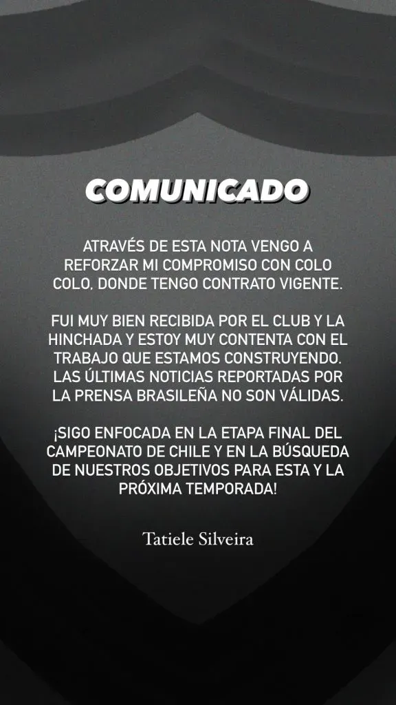 En una story subida en sus redes sociales, Silveira enfatiza que “fui muy bien recibida por el club y la hinchada, estoy muy contenta con el trabajo que estamos construyendo, y las últimas noticias reportadas por la prensa brasileña no son válidas“.