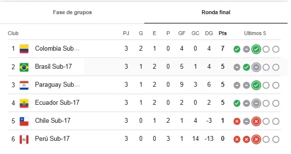 Tabla de posiciones del hexagonal final del Sudamericano Sub-17 Femenino 2025:
