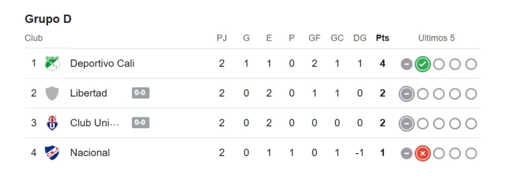 Con esto, la U tendrá que buscar su clasificación ante las colombianas, que se han visto superioras en el grupo, teniendo en cuenta que en el otro partido chocarán Libertad (2 puntos) y Nacional (1 punto).