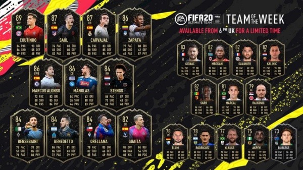 Un buen indicador del fútbol mundial es el ránking que prepara semana a semana el videojuego FIFA 20 con los mejores futbolistas de cada semana, un listado que los fanáticos esperan con ansias para la conformación de sus propios equipos.