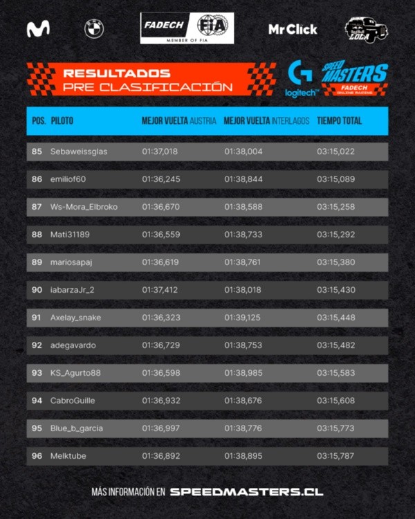 Para más información del torneo ingresa a www.speedmasters.cl.