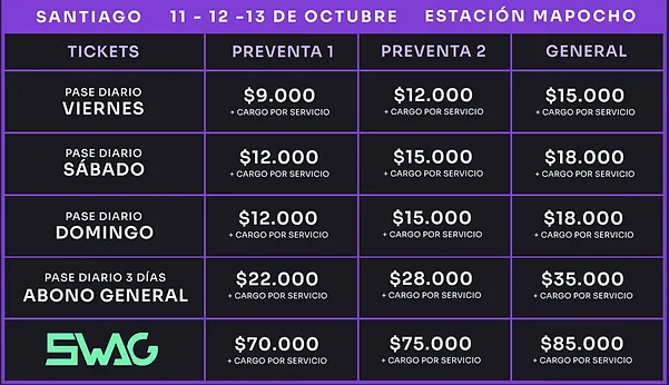 Las entradas van desde los $9.000 hasta los $85.000, detallados de la siguiente manera: