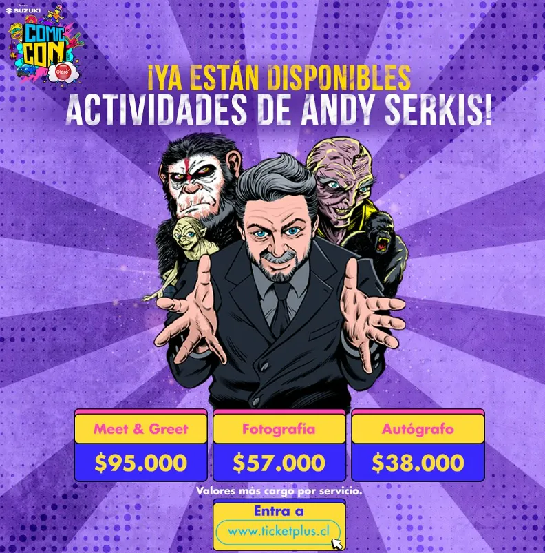 Además, Serkis estará disfrutando junto a sus seguidores en actividades especiales como el Meet and Greet, firma de autógrafos y fotografías. Todas ellas deberán comprarse aparte de la entrada en este ENLACE, en donde además podrás encontrar tickets y precios al evento.