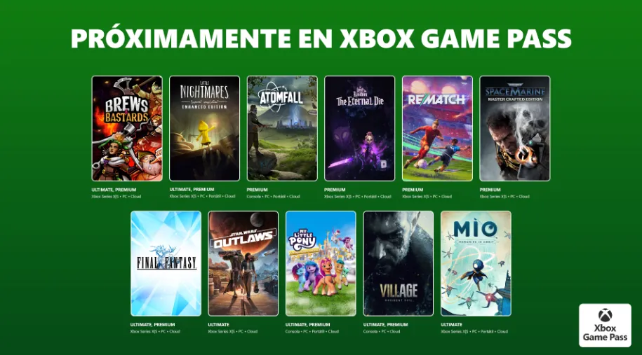- Final Fantasy (nube, Xbox Series X|S y PC) Disponible en Game Pass Ultimate, Game Pass Premium y PC Game Pass.