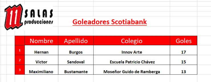 Y es que el establecimiento tiene a uno de los goleadores del torneo: Hernán Bustos lleva 17 goles anotados durante el Campeonato Infantil Scotiabank de la Araucanía. En segundo lugar, se encuentra Víctor Sandoval de la Escuela Patricio Chávez con 15 tantos, y en tercer lugar se encuentra Maximiliano Bustamante del Monseñor Guido de Rambergacon 13 goles.