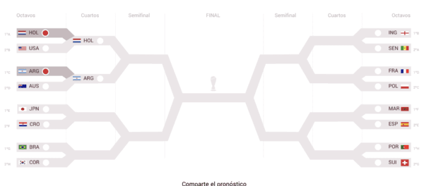Los cruces de octavos de final del Mundial se juegan de la siguiente manera:
