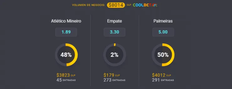 Para el OSO de Coolbet el gran favorito para ganar en el duelo de vuelta de la semifinal de la Copa Libertadores 2021 es el Atlético Mineiro, que paga 1,89 veces lo que juegues por sobre los 5,00 que paga Palmeiras, si piensas que ellos vencerán en la vuelta. Ahora, el empate entre ambos paga 3,30 veces lo que apuestes.