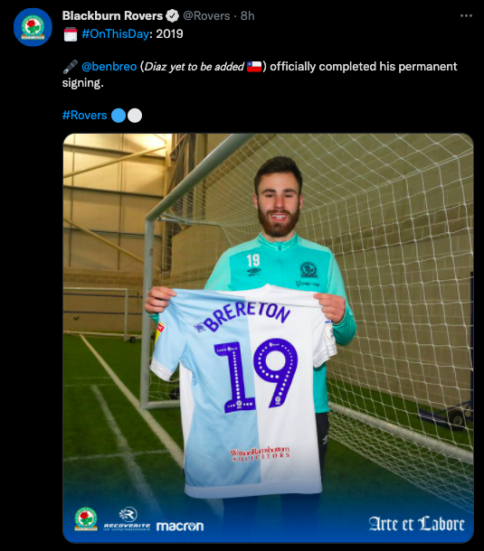 Revisa la celebración del Blackburn Rovers a tres años delcontrato definitivo con Ben Brereton Díaz
