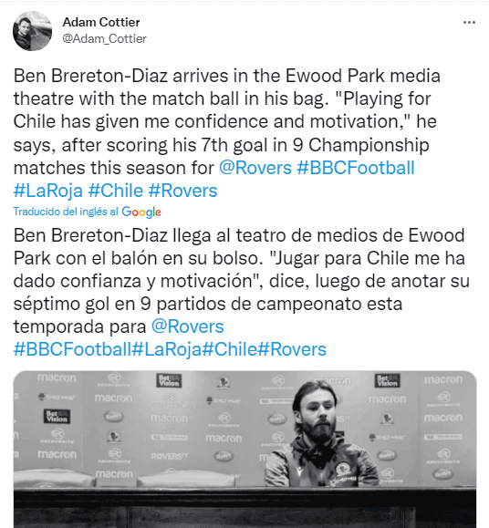 Brereton Díaz disputará dos compromisos con Blackburn, Huddersfield y Blackpool, más antes de integrarse con la selección chilena para jugar los dos primeros partidos de la triple jornada de las Eliminatorias Sudamericanas para el Mundial de Qatar 2022 para este mes de octubre. Estará disponible ante Perú y Paraguay pero no ante Venezuela.