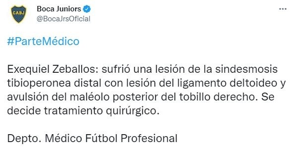 Sin embargo, se estima que Zeballos estará fuera de la acción de Boca Juniors por varios meses y, seguramente, será ya para el 2023 cuando el juvenil atacante de los azul y oro es que podrá regresar a los terrenos de juego.