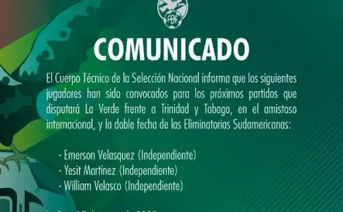 Revisa el comunicado de Bolivia sobre sus tres nuevos citados a eliminatorias