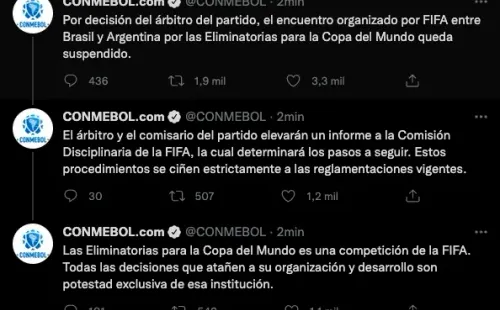 Minutos más tarde, desde Conmebol sacaron la voz e hicieron oficial la suspensión. “El árbitro y el comisario del partido elevarán un informe a la Comisión Disciplinaria de la FIFA, la cual determinará los pasos a seguir. Estos procedimientos se ciñen estrictamente a las reglamentaciones vigentes“, explicaron.