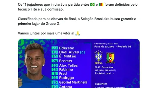 La pelotita no se detiene en el Mundial de Qatar y, en el marco de la tercera y última jornada de la fase de grupos, la selección de Brasil choca ante Camerún con el objetivo de cerrar la primera ronda con puntaje perfecto en lo más alto del grupo G. El duelo se juega en simultáneo con el compromiso entre Serbia vs Suiza, en una fecha donde los tres equipos tienen opciones matemáticas de acompañar a la verdeamarela en losoctavos de final.