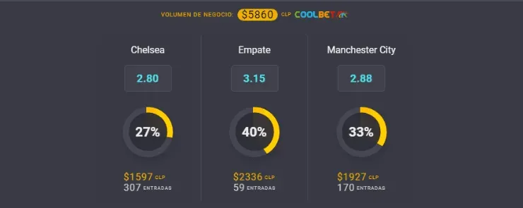 El OSO de Coolbet te cuenta que el favorito para ganar este partido de la Premier League es el Chelsea, que paga 2,80 lo que juegues, por sobre los 2,88 que paga Manchester City, si crees que los ciudadanos vencerán en la jornada de sábado. Ahora, si piensas que termina en empate, paga 3,15 veces lo que apuestes.