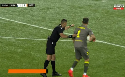 Bravo discutió con el árbitro del Betis vs HJK. | Foto: ESPN