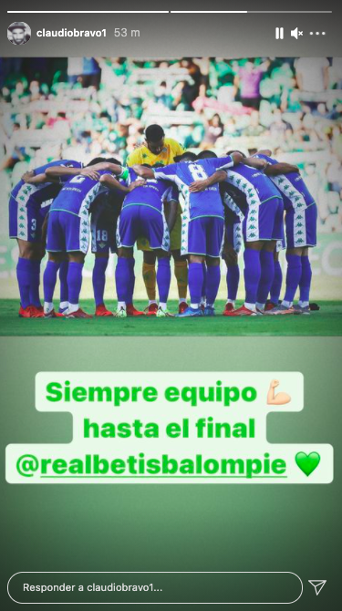 Tras ello, el capitán de la Roja publicó una captura en la arenga previa al compromiso y con una frase que resume su sentir después de lo hecho en el Benito Villamarín. “Siempre equipo, hasta el final“, señaló.