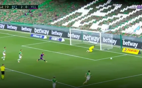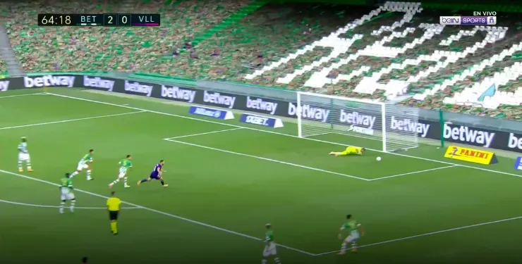 Cuando el reloj marcaba el minuto 64′ y el Betis ganaba por 2-0, Orellana tomó la pelota frente al área y sacó un potente tiro al palo izquierdo de Bravo, que se estiró de forma espectacular y le negó el tanto.